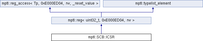 Public Types inherited from mptl::reg_access< Tp, 0xE000ED04, rw, _reset_value > | |